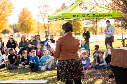 On October 14th, 2025, Mrs. A.'s Grade 5 and 5/6 students were joined by parents, family members, staff, and community guests to commemorate the burial of their time capsule. The ceremony began with students carrying their Pringles can time capsules from the school to the burial site, where they were placed in a special time capsule box crafted by Matthew Williams' shop class at V.C.I.